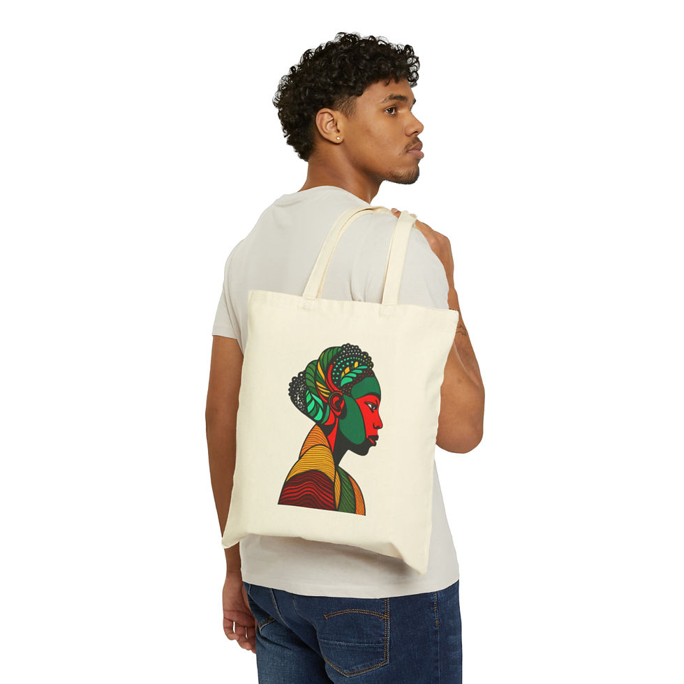 African Cultural Designs Queen Mother #6 100% Cotton Canvas Tote Bag 15" x 16"